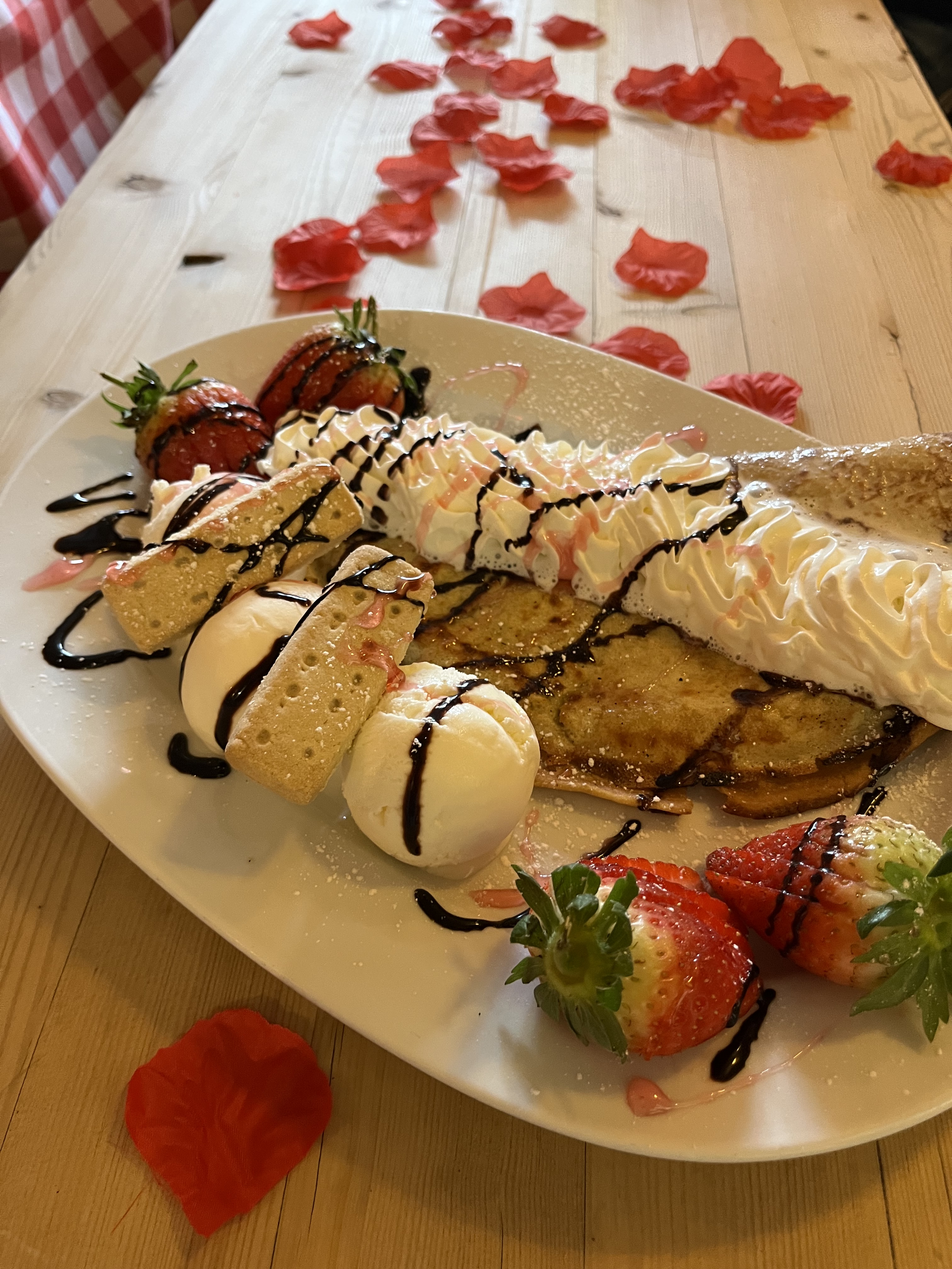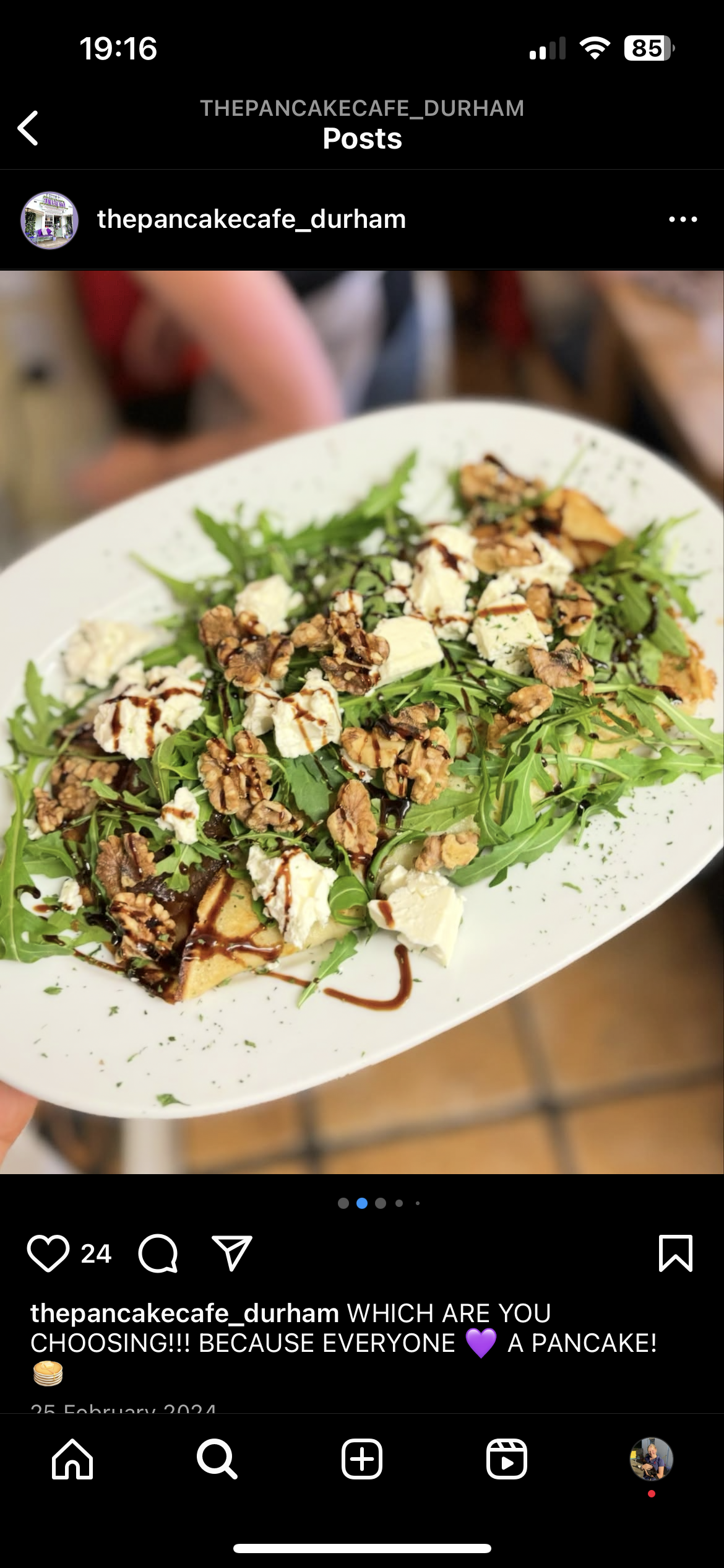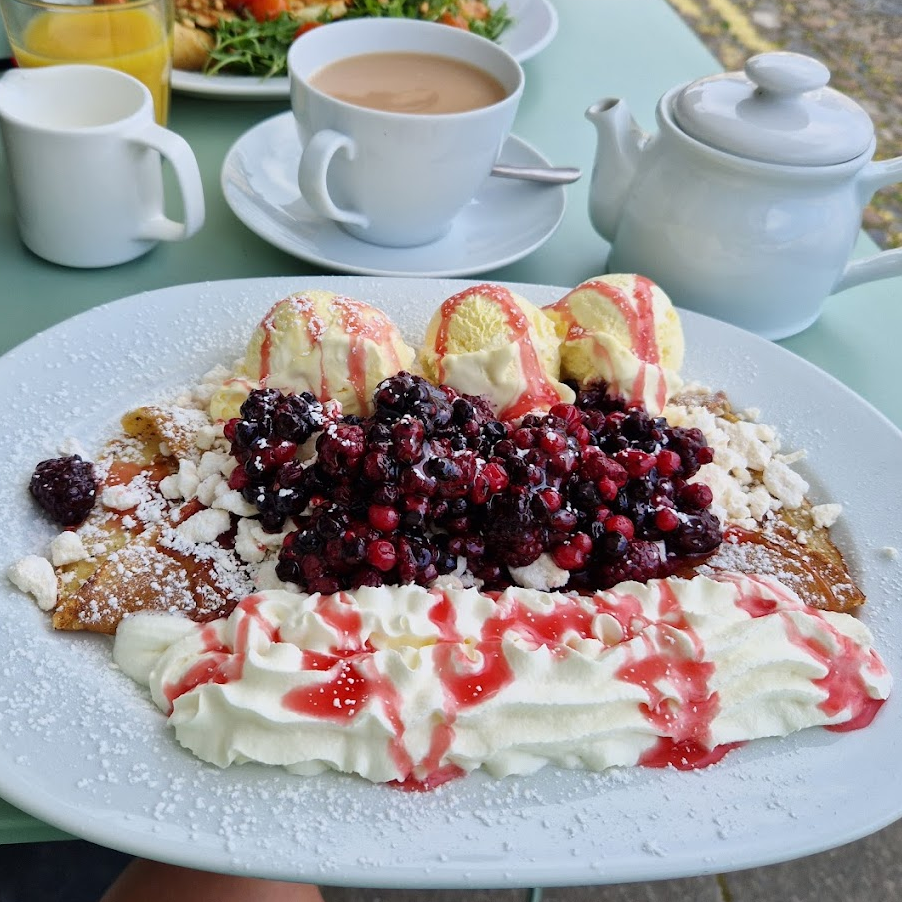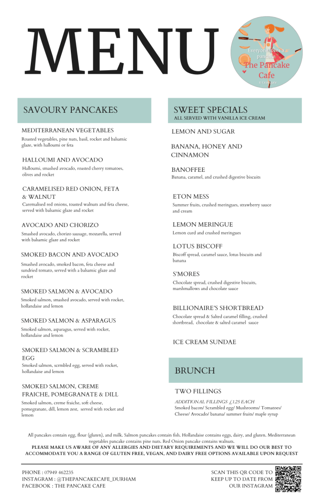 The cafe has been serving pancakes to the people of Durham for over 20 years. We offer both sweet and savoury options as well as an extensive list of drinks. We do our best to cater to most food requirements, including gluten free and vegan options, please just let your server know when ordering!